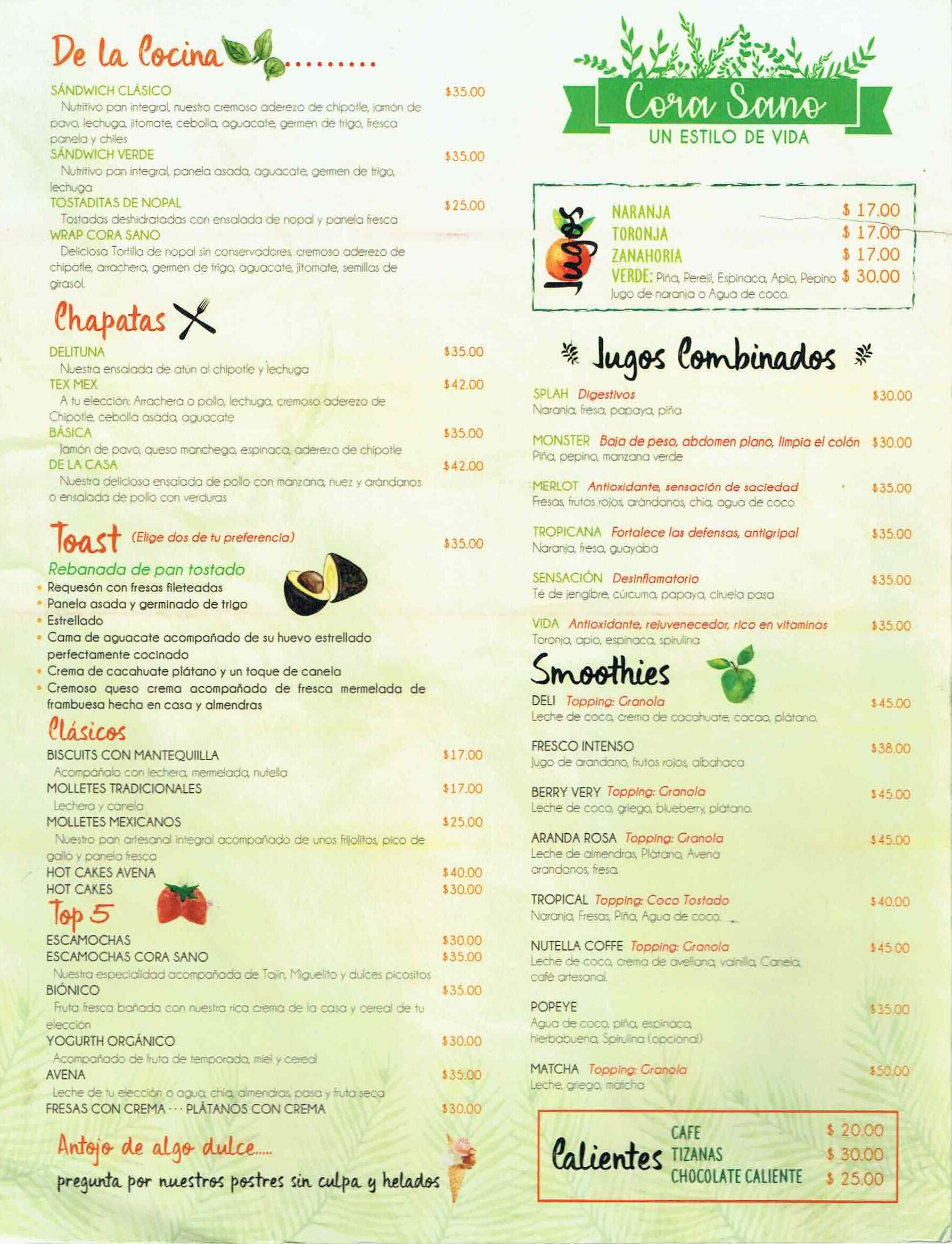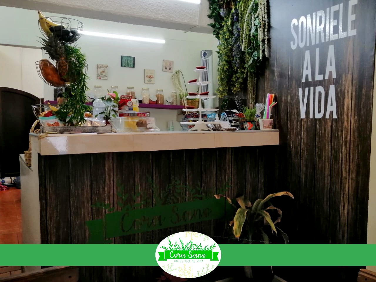 Cora Sano juice bar, cocina, repostería, alimentos saludables, nutritivos y deliciosos ingredientes puros sin azucares y frescos.