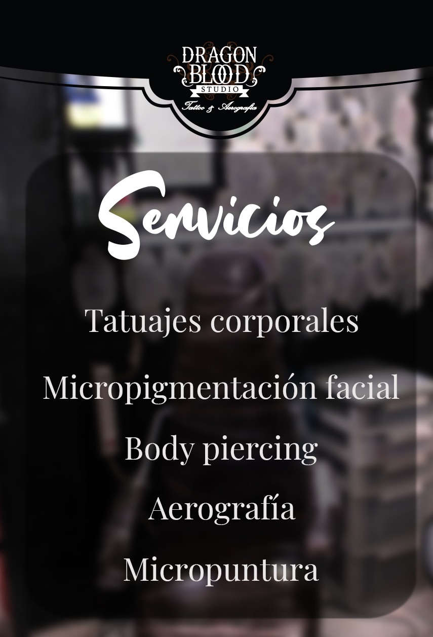 Dragón Blood te ofrece tatuajes, tatoo, piercing, aerografía, delineados permanentes, tatuajes henna, pintura, tatuajes corporales micropigmentacion facial, Body piercing, aerografia, micropuntura.