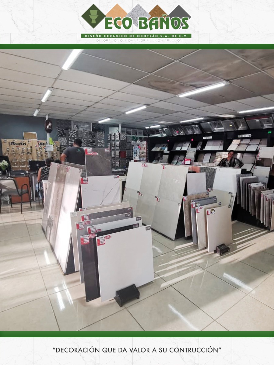 Eco Baños te ofrece; pisos, azulejos, adhesivos, muebles de baño, accesorios, llaves, tarjas, campanas, espejos, botiquines, tinas, losas, lamparas, candiles, ventiladores y complementos para tu hogar. Contamos con marcas como; Rugo, Vitromex, Lamosa, Ade 1000 cementos), Crest, Formacryl, Sanaire, Daltile. Telefono; 392 9220472.