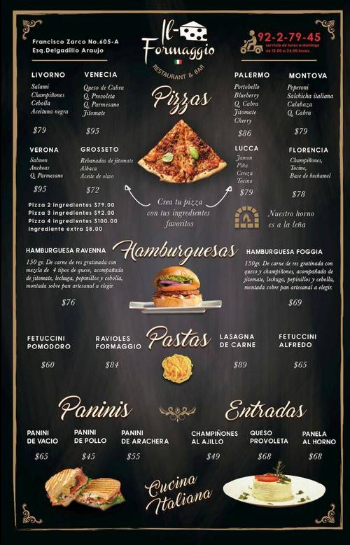 Somos un restaurante estilo Italiano donde podrás encontrar una gran variedad de pizzas a la leña ,vinos de mesa, pastas y cerveza artesanal regional.