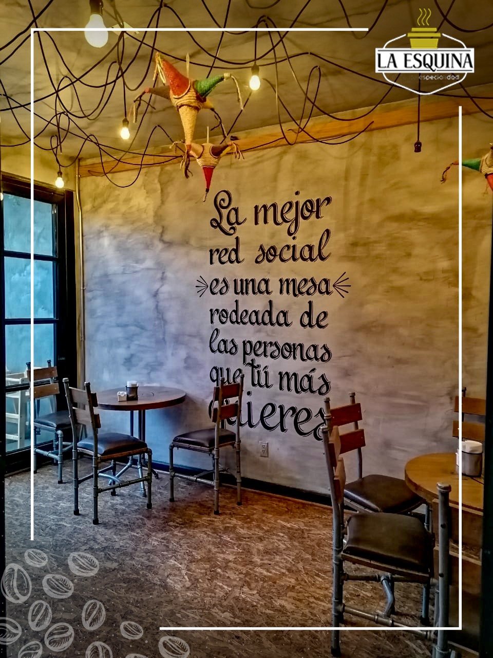 La Esquina Café es un lugar creado pensado en ti, porque sabemos que la vida está hecha de momentos, te ofrecemos un espacio para crearlos; un lugar donde seguimos creyendo que el mejor dialogo se acompaña con una mirada y que no hay mejor red social que una mesa rodeada de las personas que quieres. Disfrutando de una excelente taza de café de especialidad, con la combinación de granos de Veracruz, Guerrero y Chiapas.
