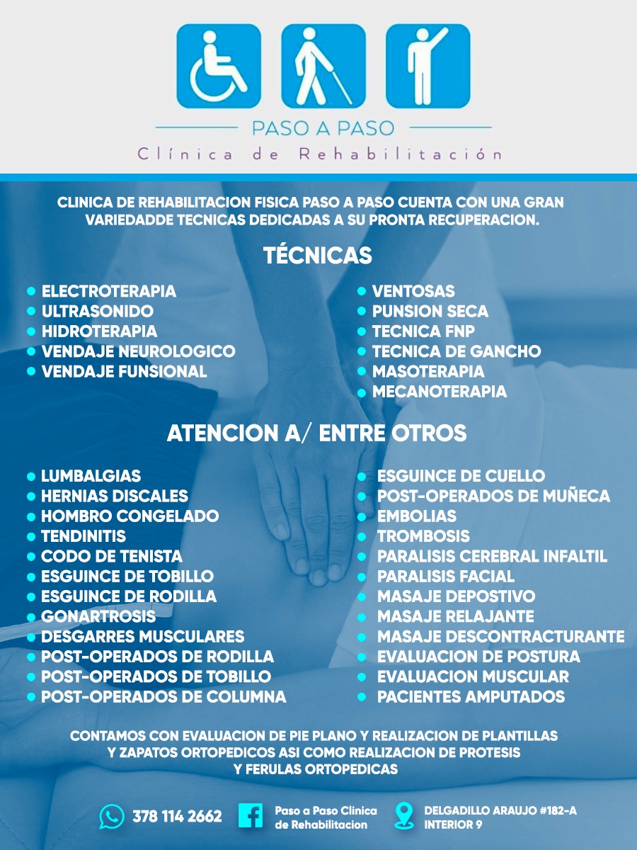 Clínica de rehabilitación física, neurologica y osteopatia. Celular 378 114 2662.