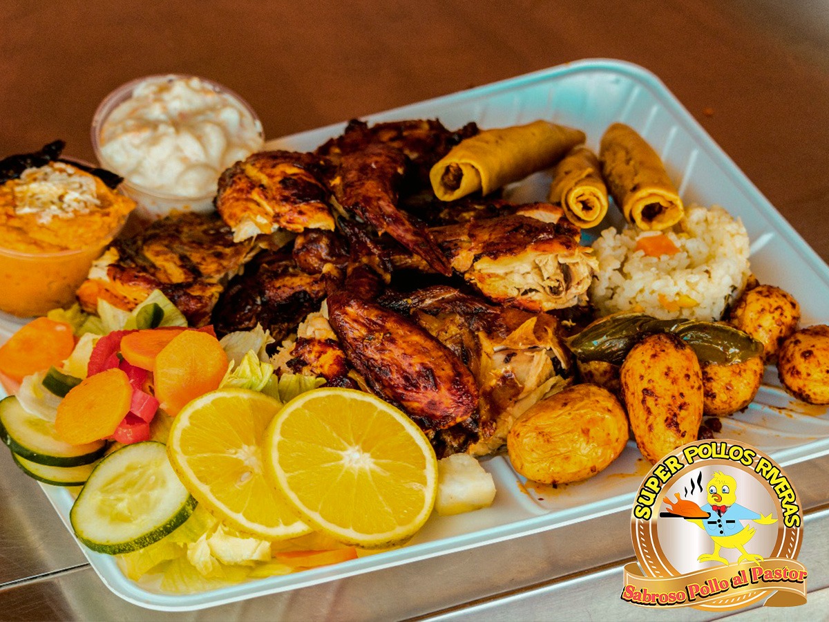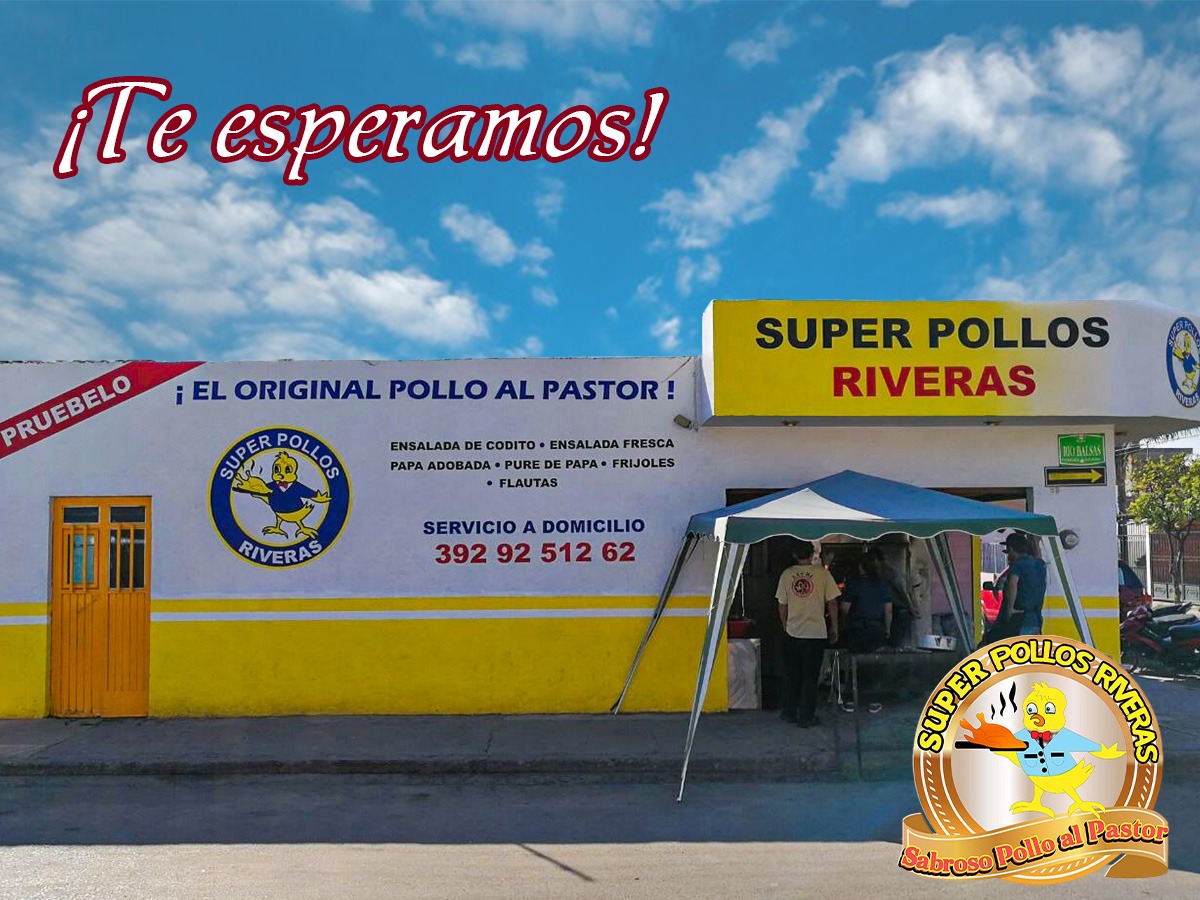 SUPER POLLOS RIVERAS el original y sabroso pollo al pastor le ofrece: Ensalada de codito, Ensalada fresca, Papa adobada, Pure de papa, Arroz Blanco, Frijoles, Flauta, ademas Sábado y Domingo contamos con delicioso Pollo al Carbón.