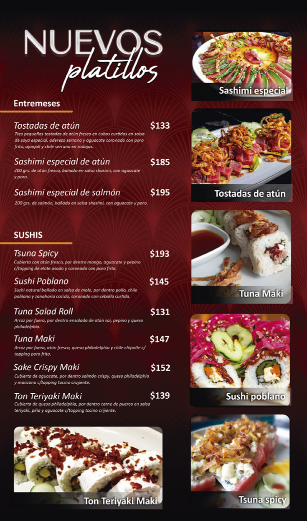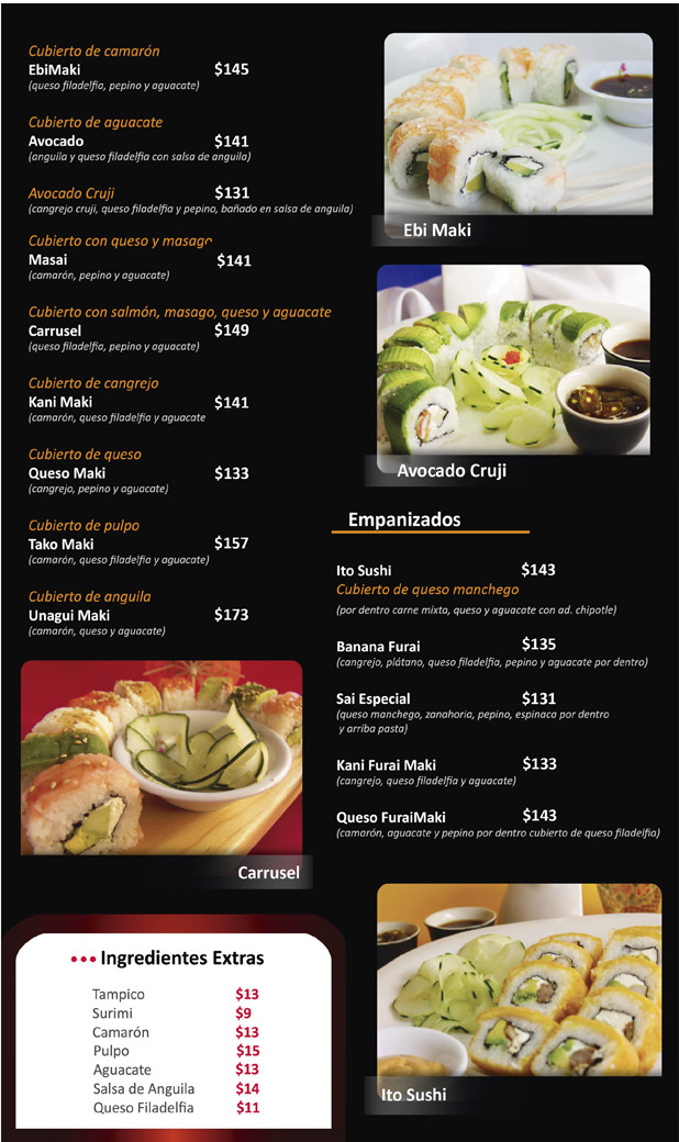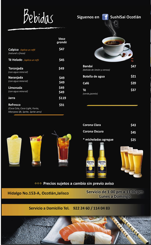Sushi Sai es excelencia en cocina Asia-Fusión. Contamos con un delicioso y amplio menú que ha deleitado los paladares de ocotlenses y visitantes. TAMBIÉN PUEDES HACER TUS PEDIDOS Y RESERVACIONES AL NÚMERO 392 9222460 - 392 114 0483.