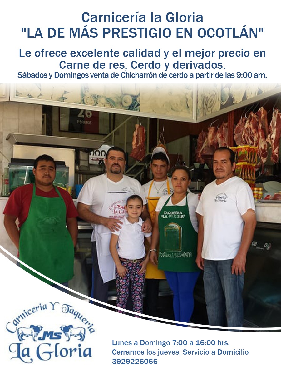 Carnicería la Gloria "LA DE MAS PRESTIGIO EN OCOTLAN" le ofrece excelente calidad y el mejor precio en Carne de res, Cerdo y derivados.