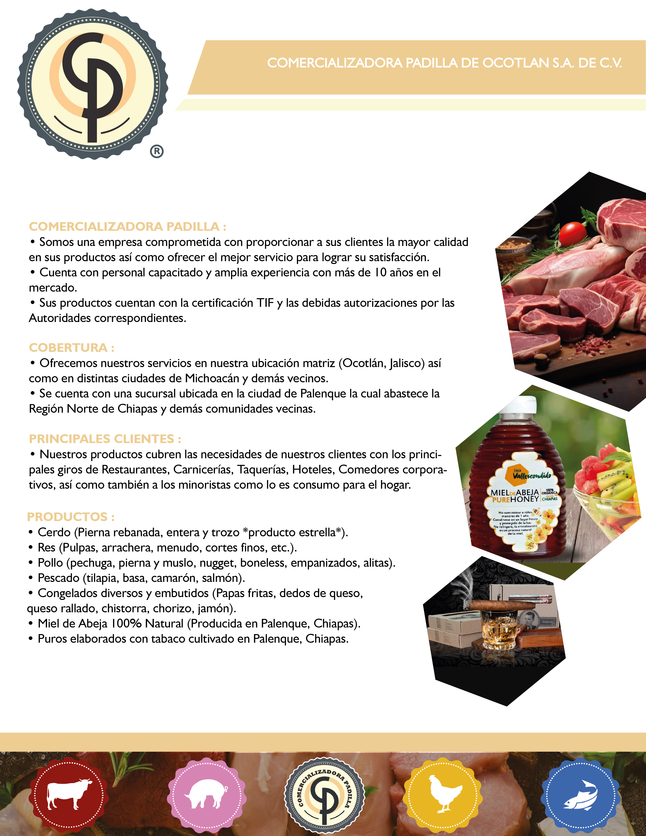 Distribución de productos SuKarne, Carni-K, Sigma y algunas otras empresas bajo el sello TIF de calidad. Distribución de Lácteos, como lo son: Crema y algunos tipos de quesos.