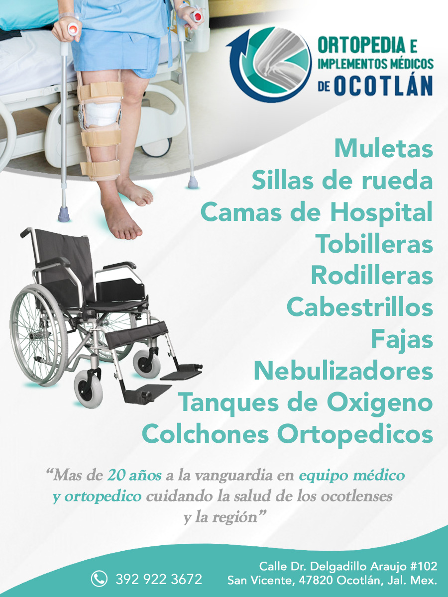 Ortopedia Ocotlán más de 20 años a la vanguardia en equipo médico y ortopedico, cuidando la salud de los ocotlenses y la región.