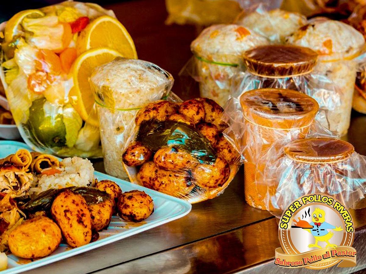 SUPER POLLOS RIVERAS el original y sabroso pollo al pastor le ofrece: Ensalada de codito, Ensalada fresca, Papa adobada, Pure de papa, Arroz Blanco, Frijoles, Flauta, ademas Sábado y Domingo contamos con delicioso Pollo al Carbón.